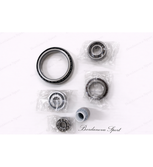 Kit comprenant 6 roulements , 5 synchro , 1 joint de carter de boite , 1 kit de bagues d'axes de sélecteur de vitesse , 1 guide de butée d'embrayage